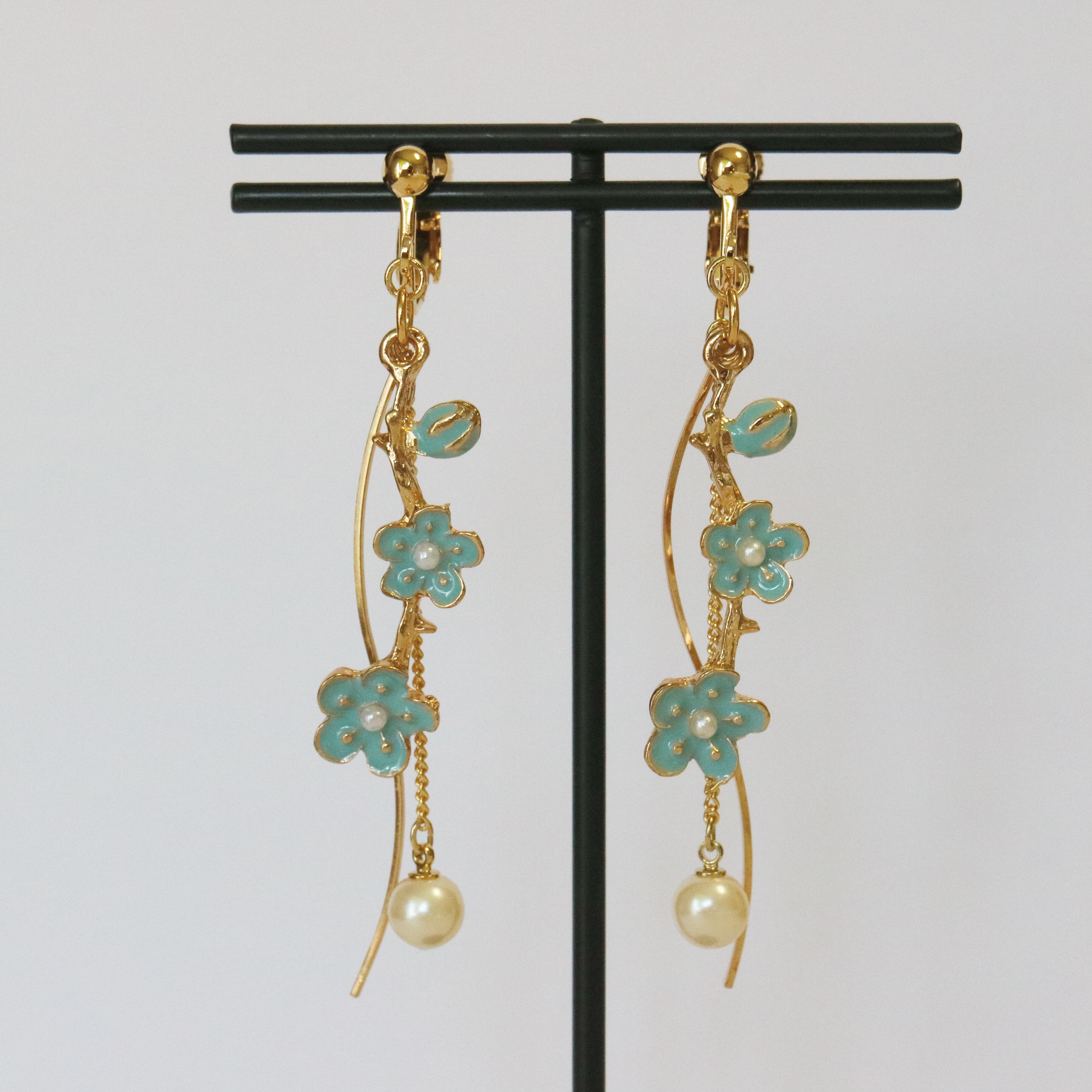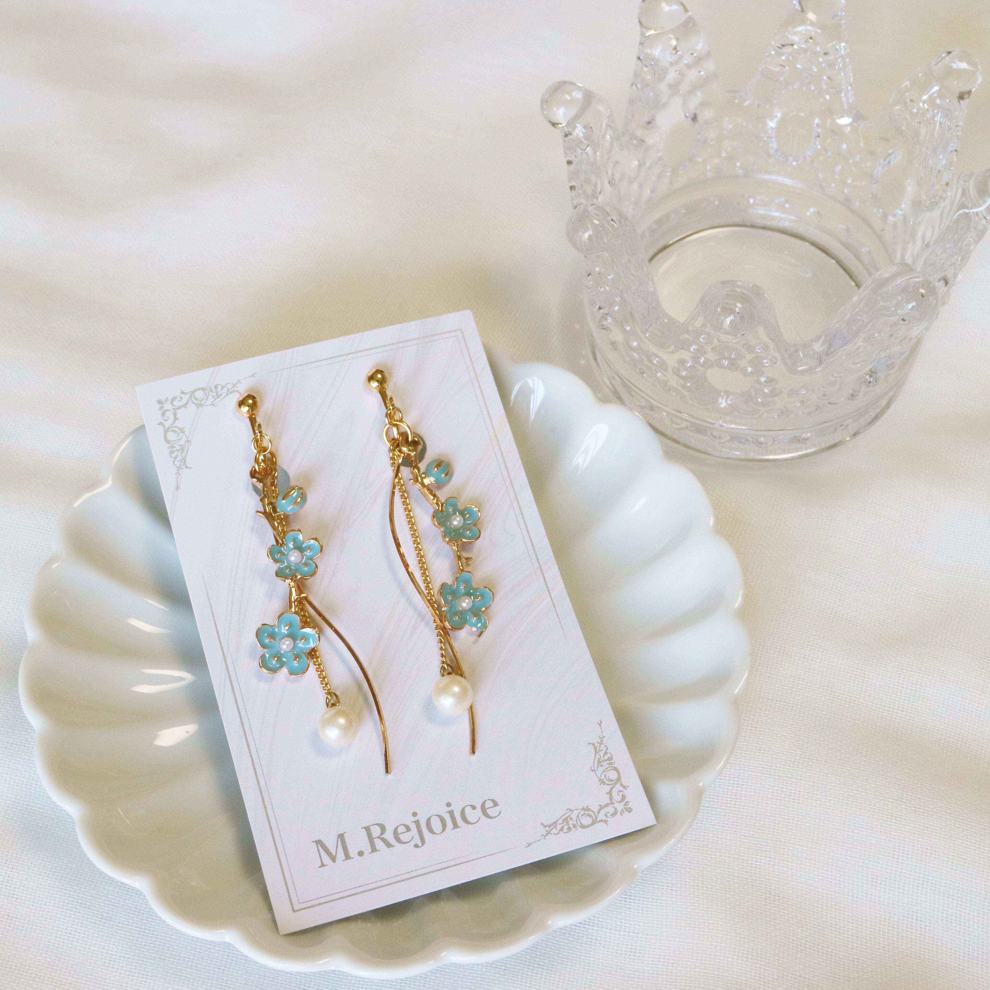 [フラワーダンス] 水色のお花がゆらゆらと揺れる可愛いイヤリング