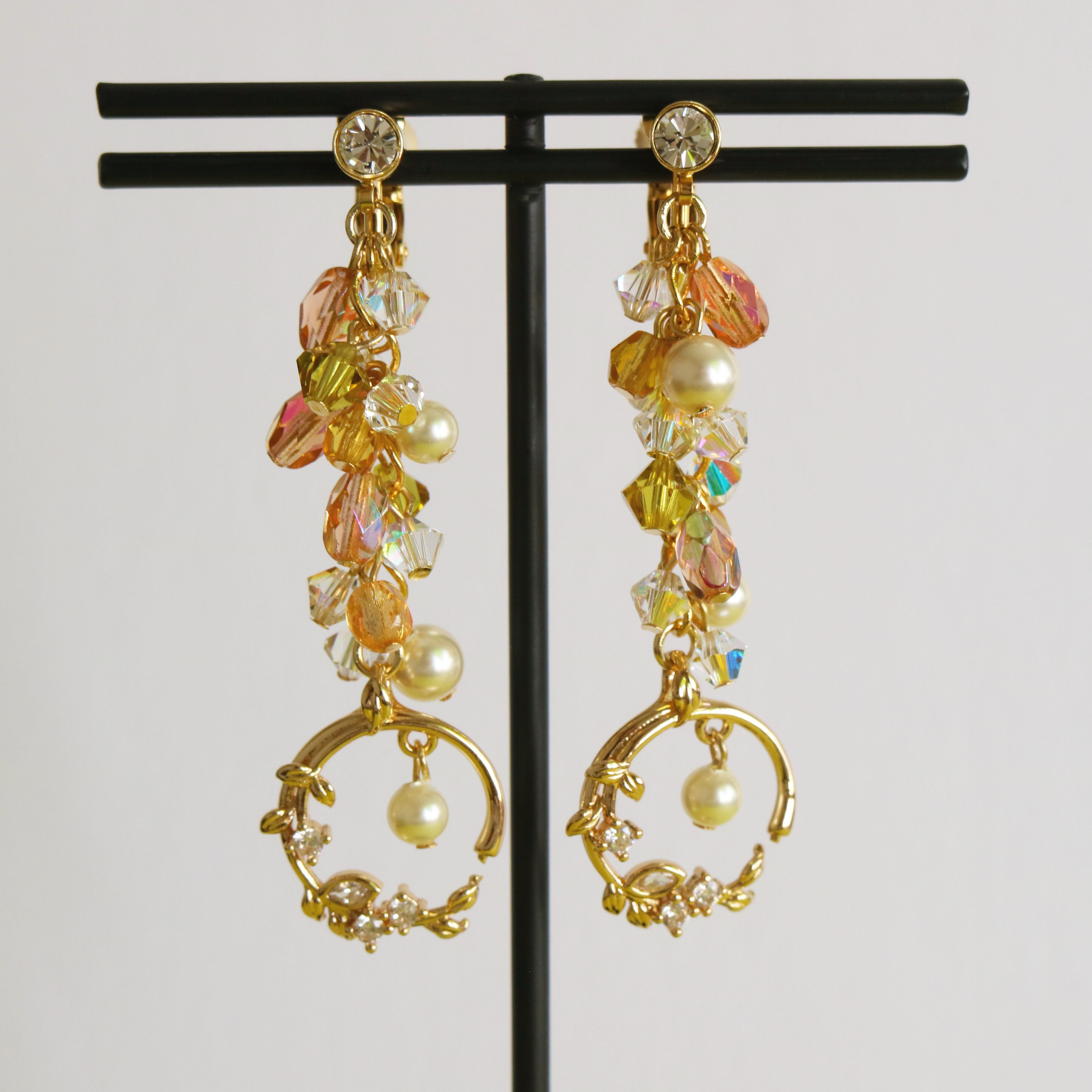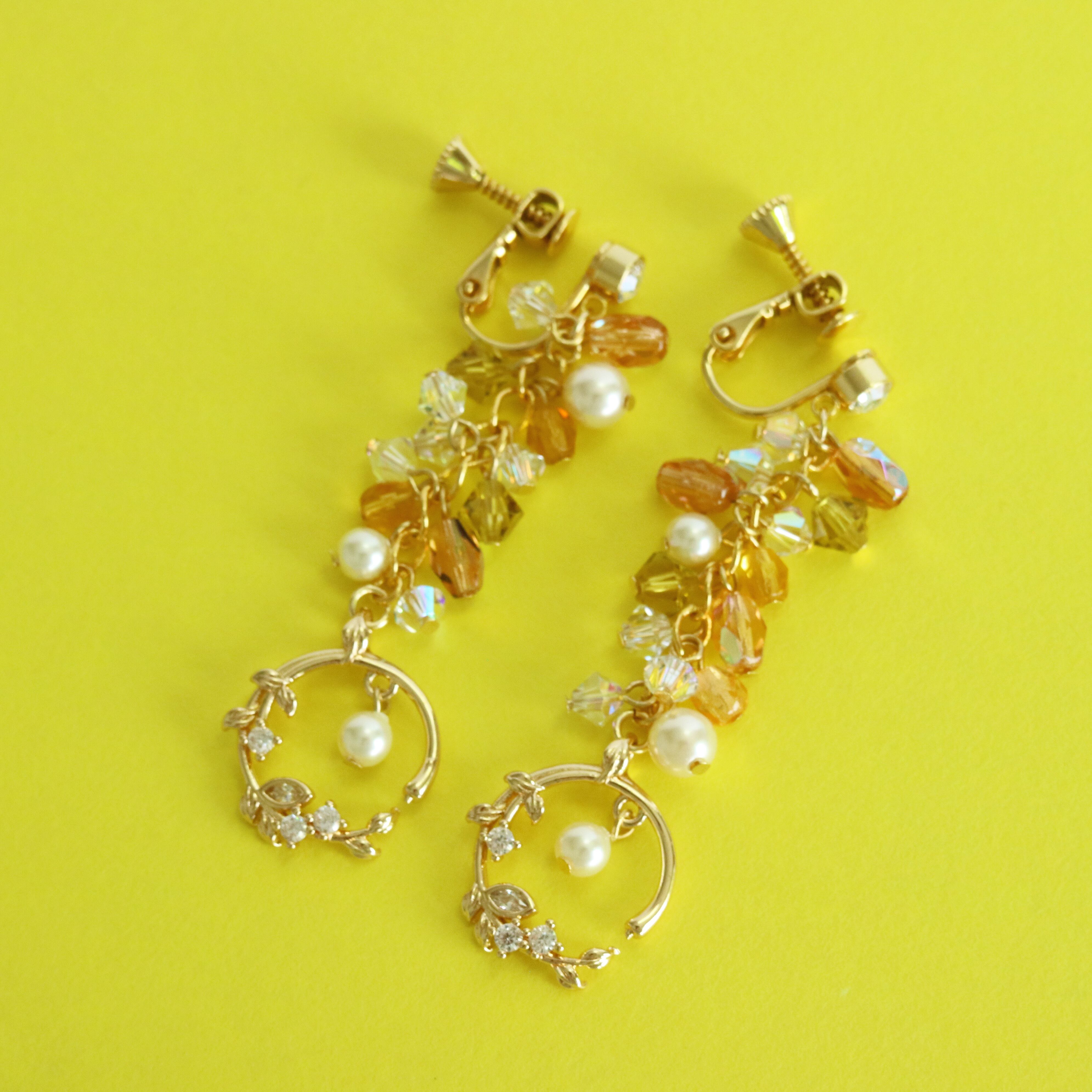 [ガーデンフラワー] キラキラのビーズが綺麗に輝くイヤリング