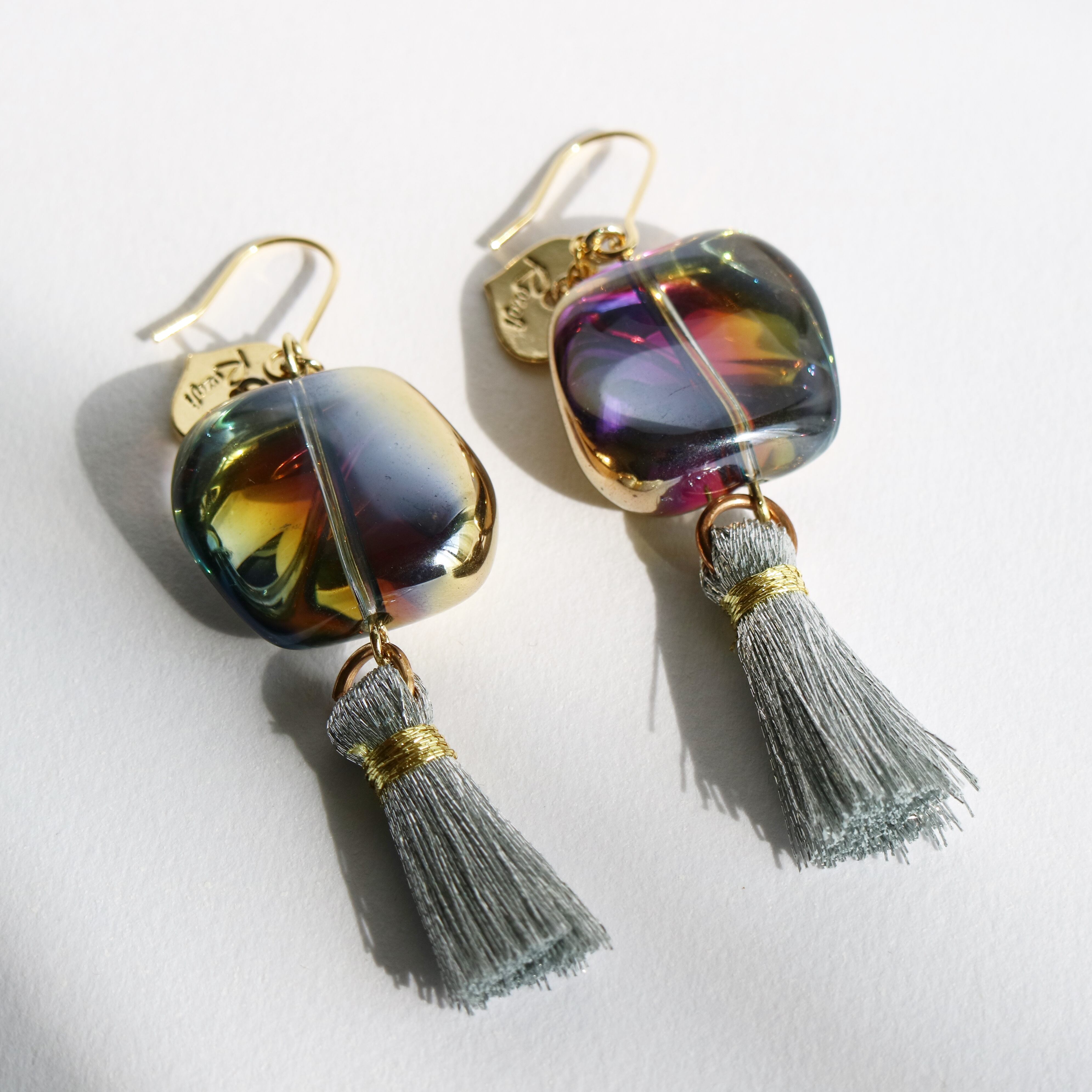 銀河のように奥深い輝きを放つビーズが目を惹くデザインのピアスです。シルバーのタッセルと合わせることで、宇宙の雰囲気を醸し出しています。個性的なデザインなので、コーディネートの主役にもお使いいただけます。また、パーティーシーンなどでもドレスと相性のいいアイテムです。