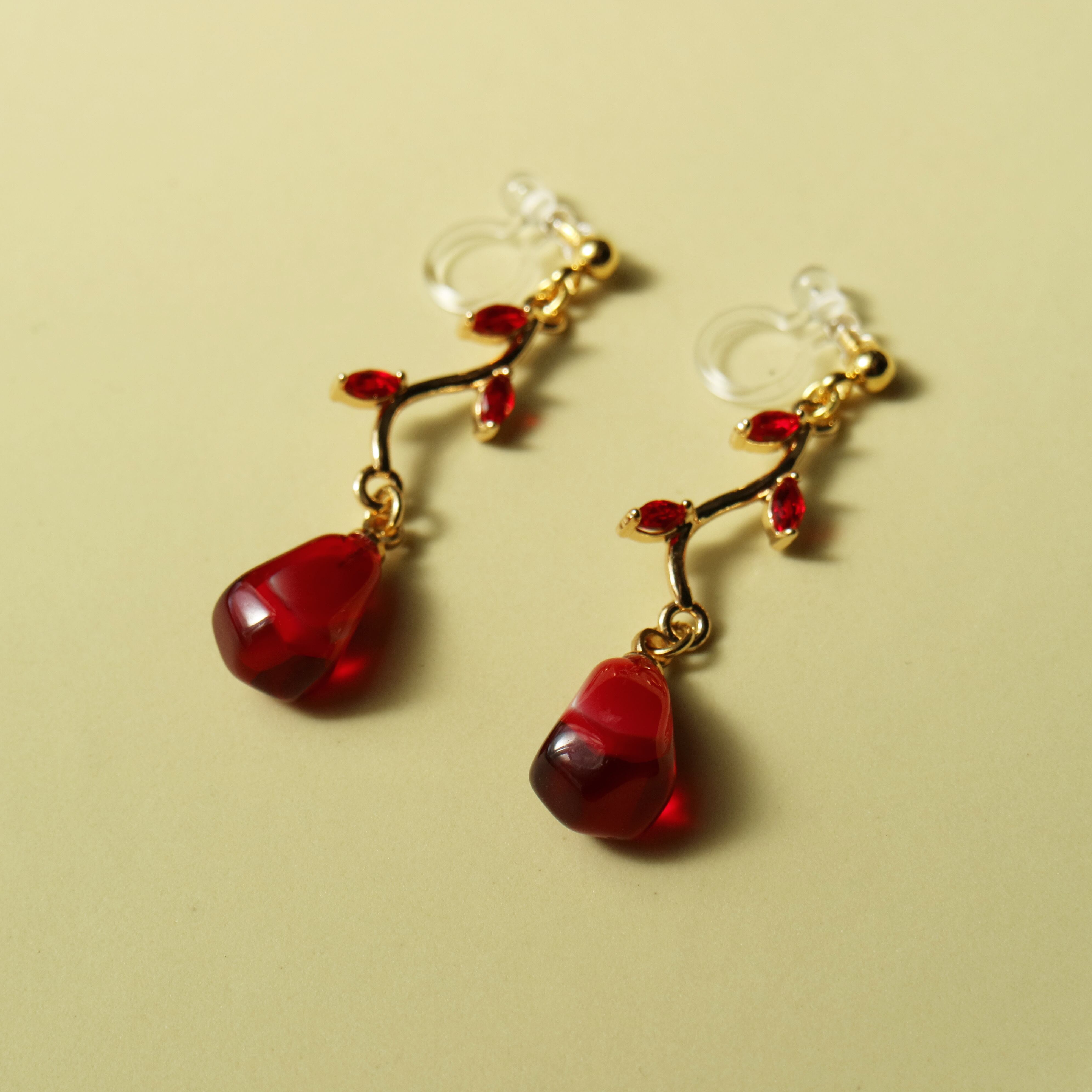 [レッドリーフ] 元気がもらえる赤色が綺麗なイヤリング