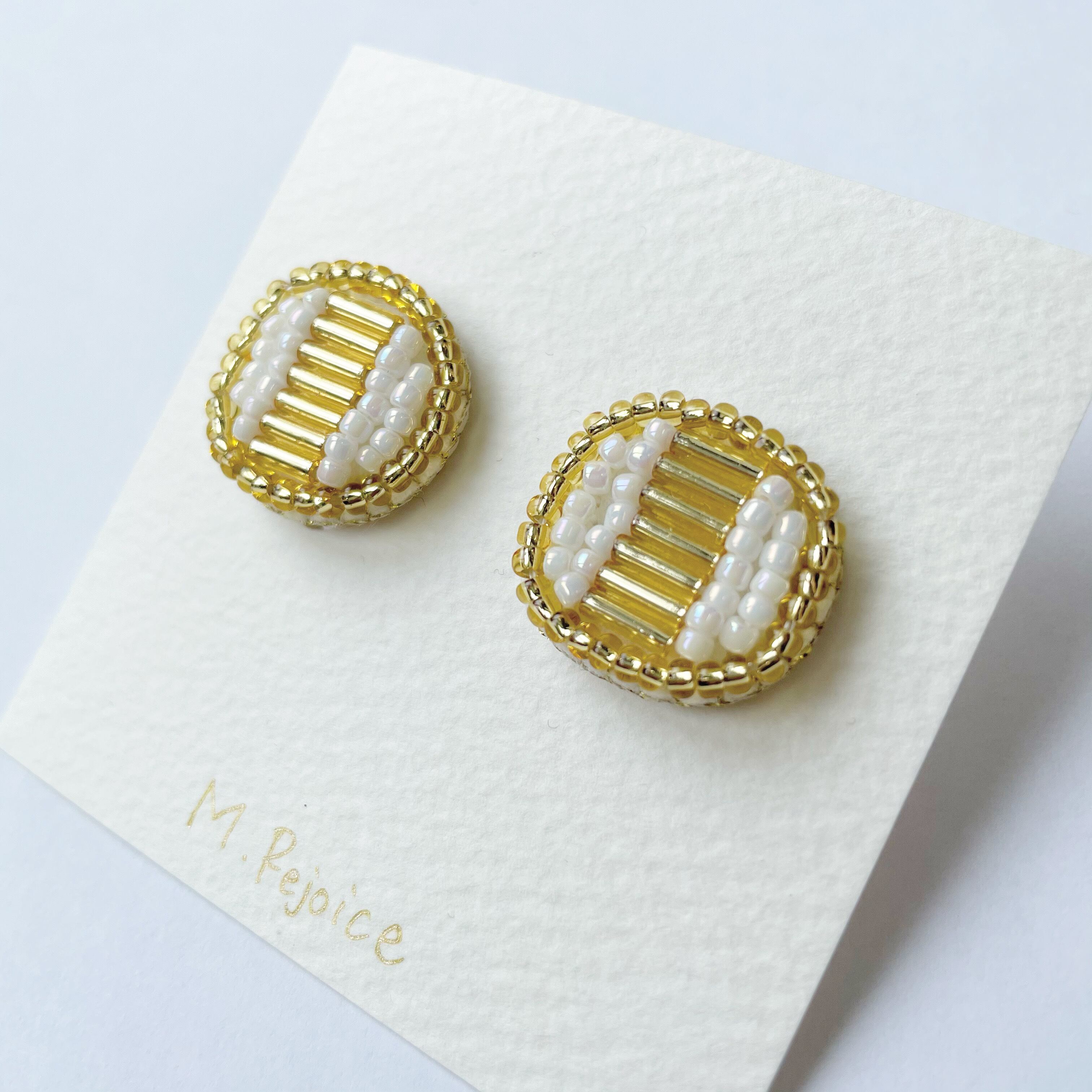 [ジュピター] 丸が可愛いビーズ刺繍イヤリング
