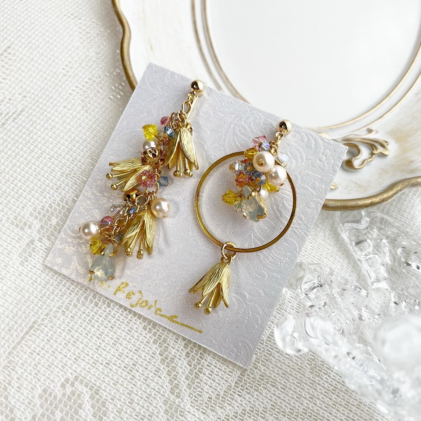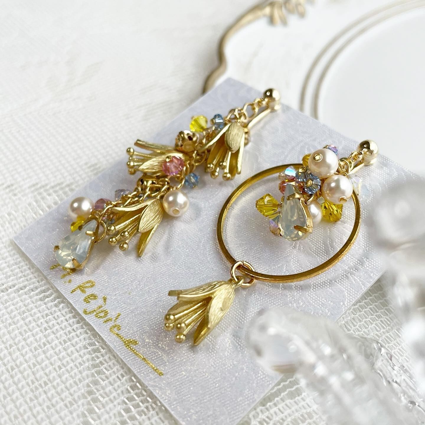真鍮のスズランとパステルカラーのビーズが綺麗なイヤリングです。