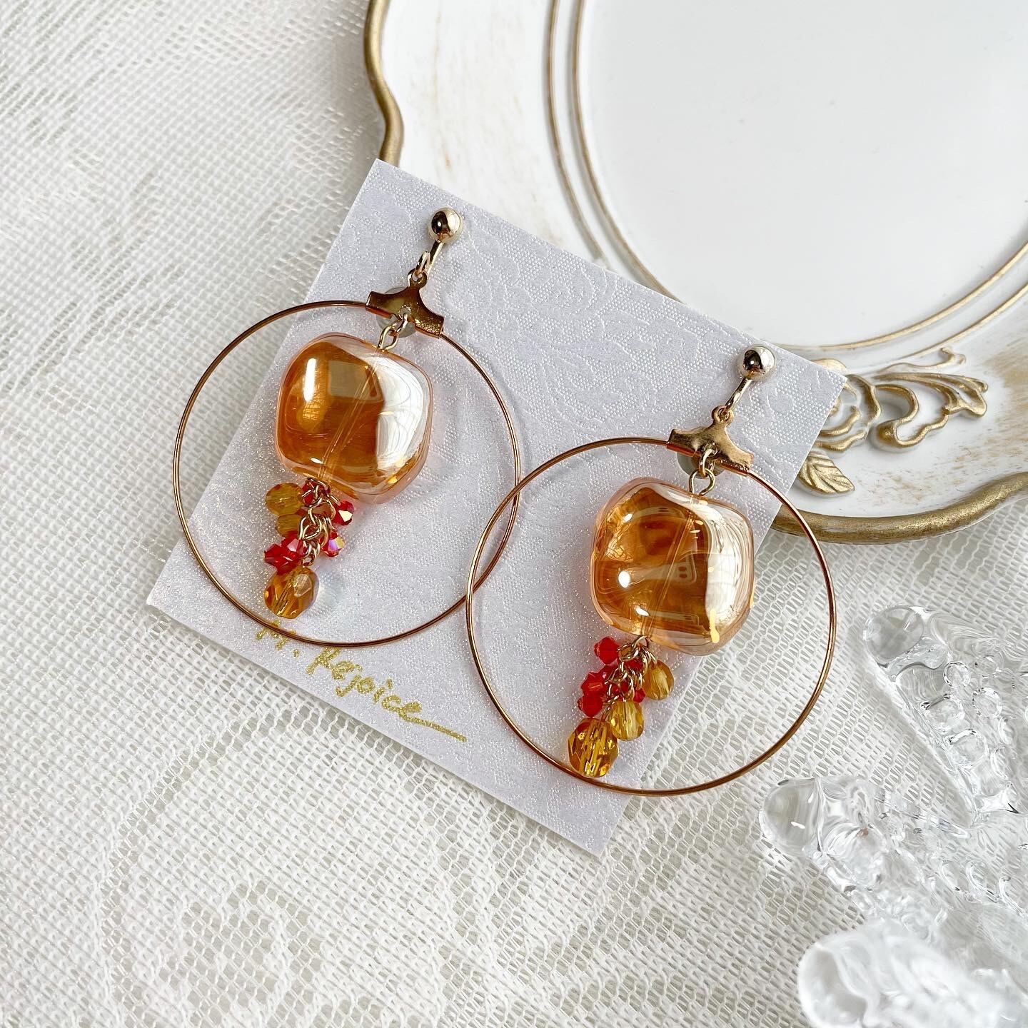 オレンジが眩しく、着けると元気になれるビタミンカラーのイヤリングです。
