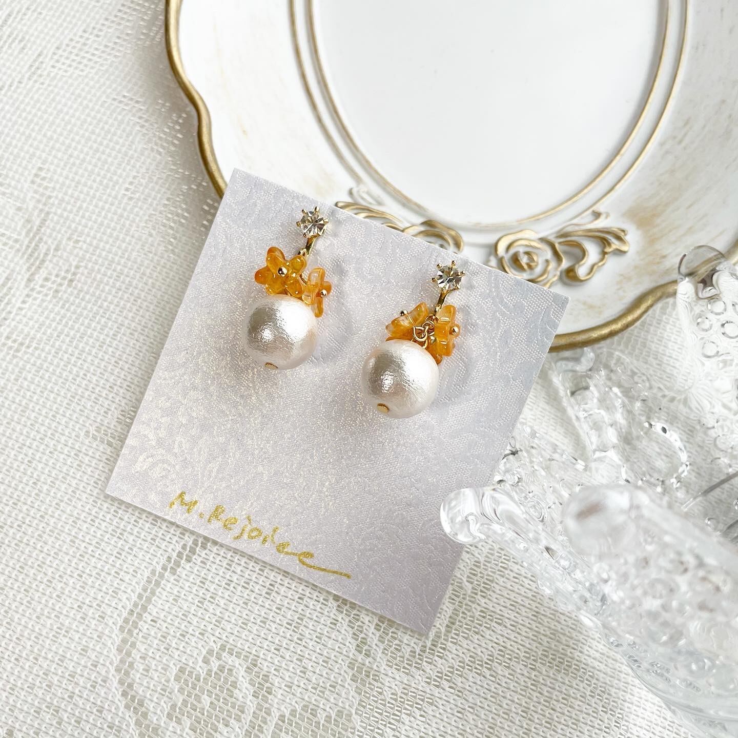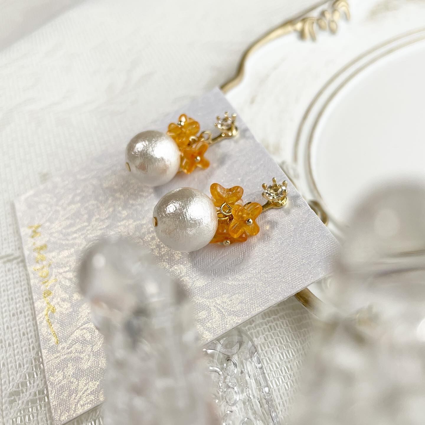 [コットンキンモクセイ] コットンパールと金木犀が可愛いイヤリング