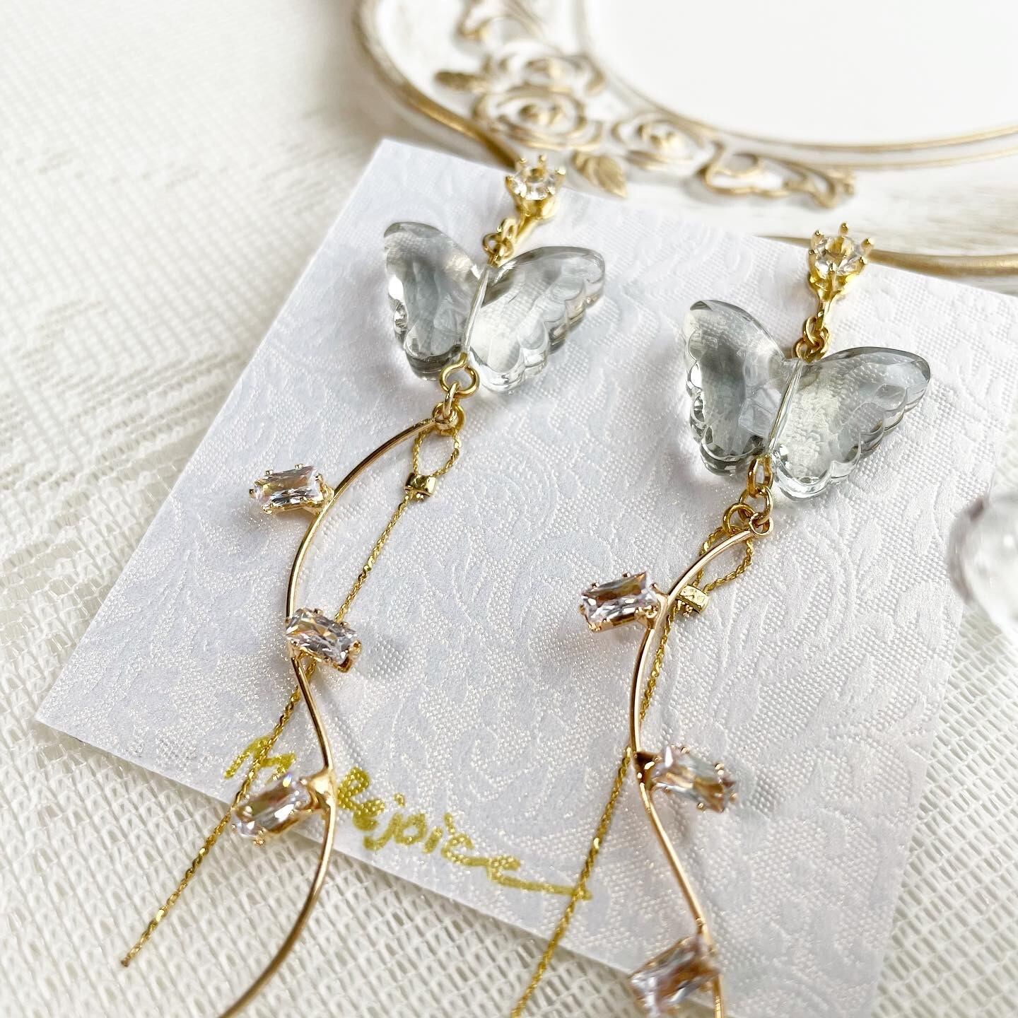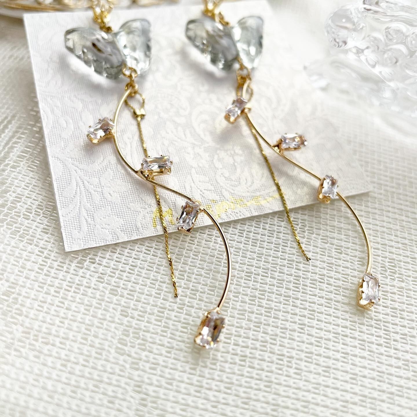 クリアの蝶々とキラキラのチェーンが可愛いイヤリングです。