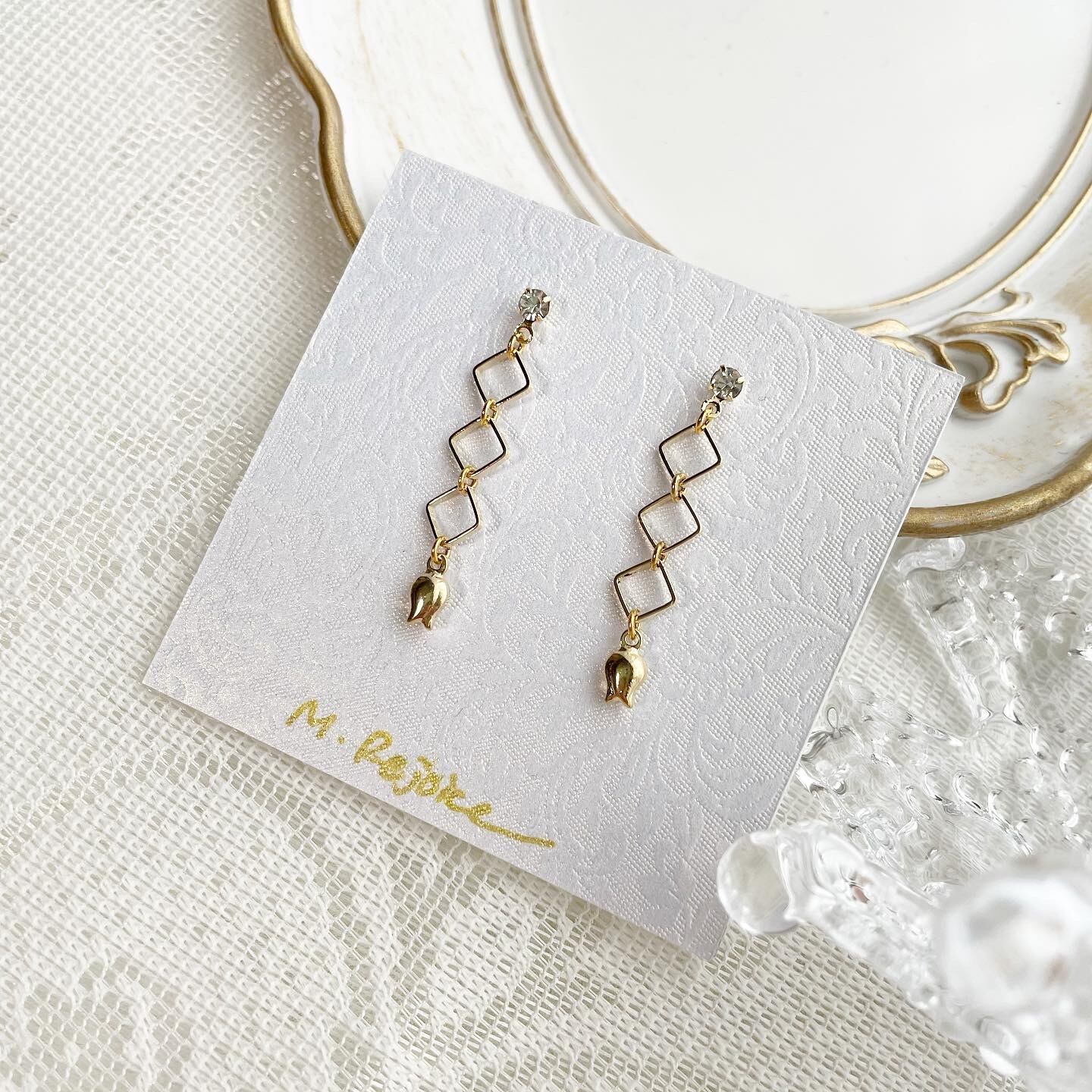 [スクエアチューリップ] さりげないチューリップが可愛いピアス