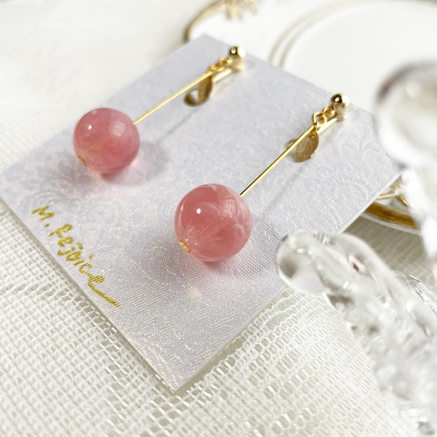 コロコロとまん丸なピンクビーズが可愛らしく揺れることで、お顔周りを明るく彩ります。