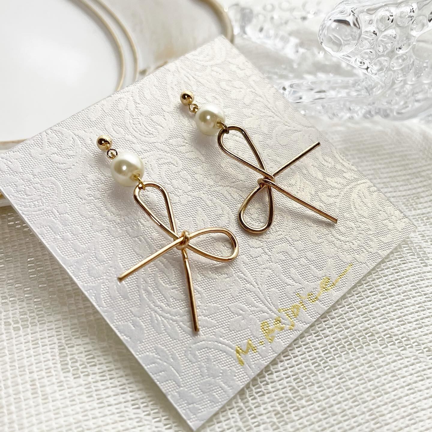 蝶々結びが可愛い韓国アクセサリー風ピアスです。