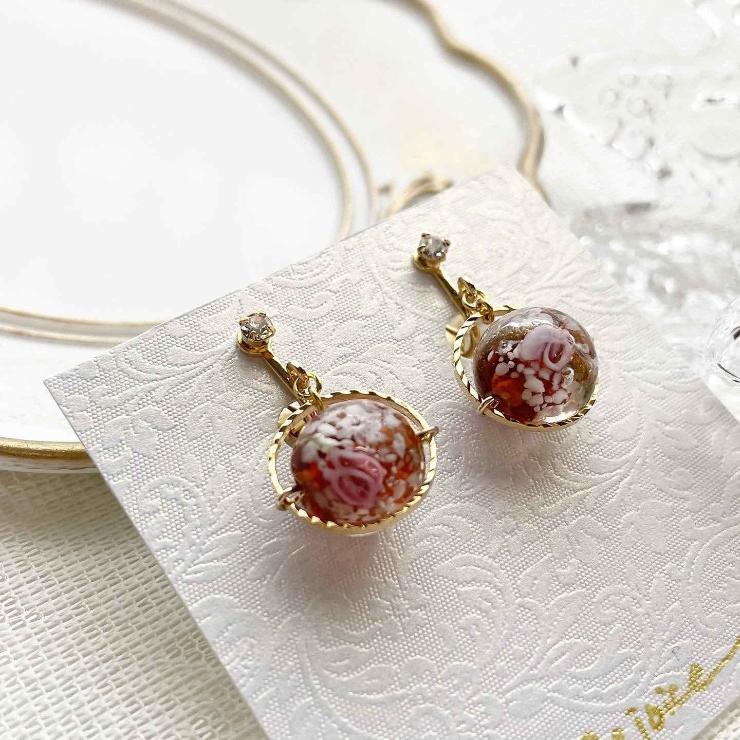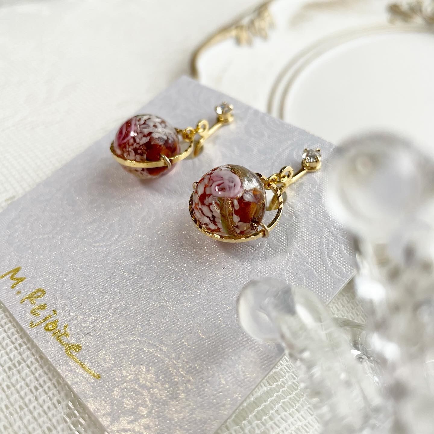 とんぼ玉が綺麗で、宇宙のようなデザインのイヤリングです。